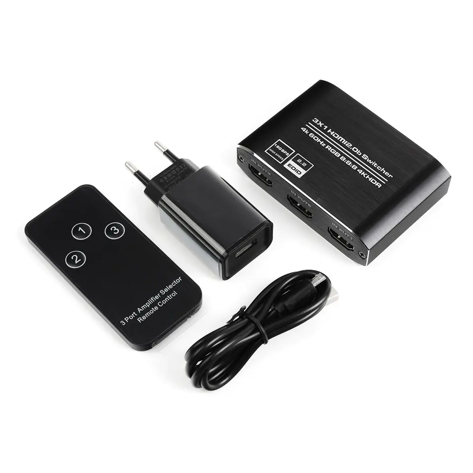 Sumator HDMI 3x1 pozwala maksymalnie zsumować 3 źródła HDMI do jednego wyjścia HDMI obsługiwanego za pomocą pilota lub z przycisku na urządzeniu. Przełącznik HDMI obsługuje formaty wideo 4K 60Hz.