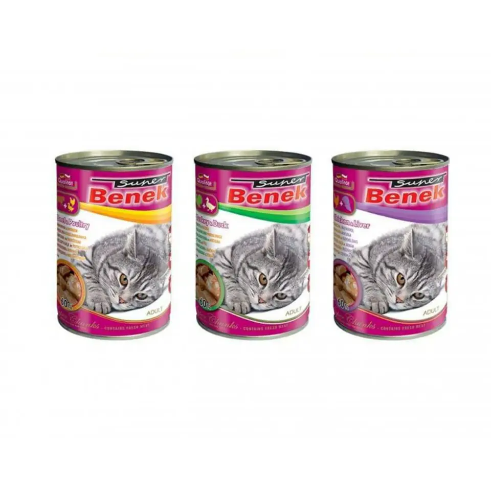 Pełnoporcjowe karmy mokre bez konserwantów i barwników dla wszystkich dorosłych kotów w formie kawałków w sosie. Karma zawiera przynajmniej 60% mięsa i produktów ubocznych pochodzenia zwierzęcego.