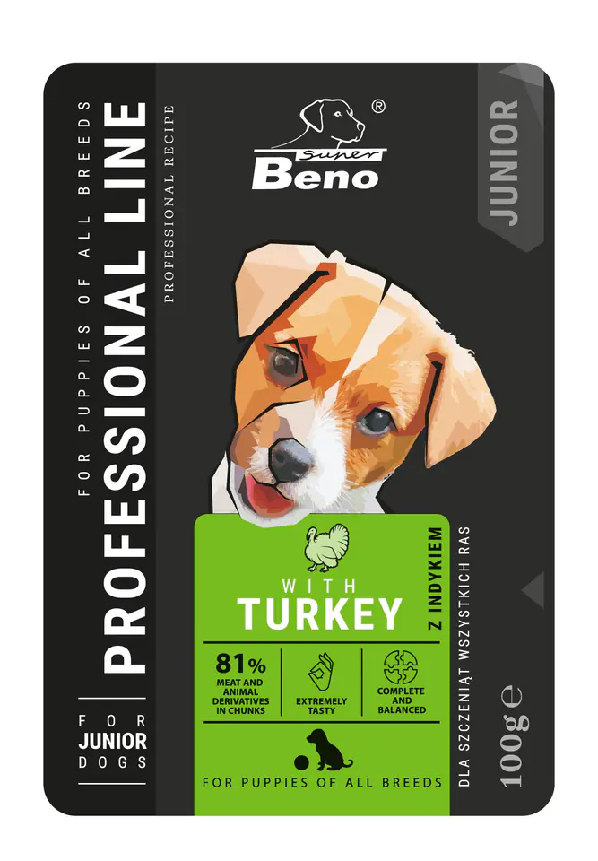 Skład: mięso oraz produkty pochodzenia zwierzęcego (wieprzowina; drób; nie mniej niż 4% indyka; wołowina) - nie mniej niż 81% w kawałkach zboża, minerały, roślinne ekstrakty białkowe, oleje i tłuszcze (olej z łososia), różne cukry.