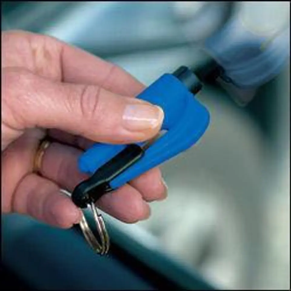 W sytuacji zagrożenia życia, gdy np. w skutek wypadku zakleszczy się pas bezpieczeństwa lub zablokują drzwi wyjściowe, będziesz mógł dzięki brelokowi szybko przeciąć pas, łatwo wybić szybę w samochodzie oraz wezwać pomoc i zasygnalizować swą obecność w samochodzie korzystając z gwizdka SOS. Brelok wyposażony jest bowiem w ostry nóż schowany w prowadnicy, co czyni go bezpiecznym przy normalnym użytkowaniu, lecz szybko i skutecznie przetnie pas i uwolni pasażera lub kierowcę w razie wypadku, dachowania, wpadnięcia do wody. Brelok posiada także specjalny twardy stalowy bolec, który po przyciśnięciu urządzenia do szyby i naciśnięciu z łatwością zbije szybę w samochodzie i pozwoli bezpiecznie wydostać się z pojazdu. Zobacz film na którym strażak prezentuje jak łatwo zbić szybę.