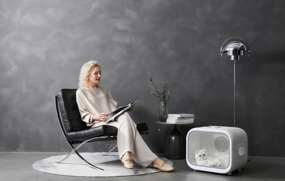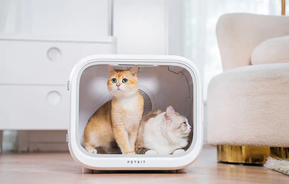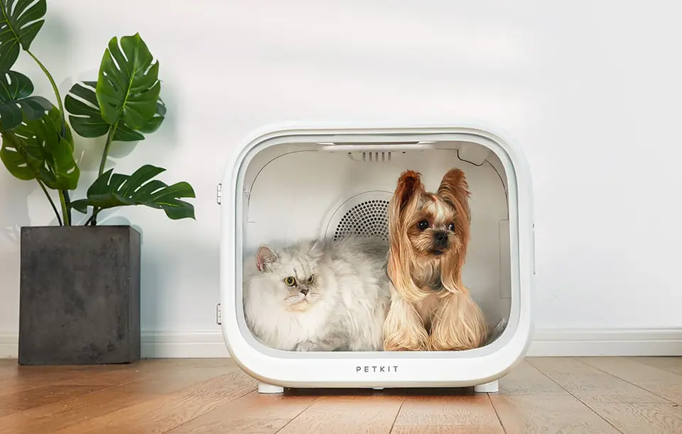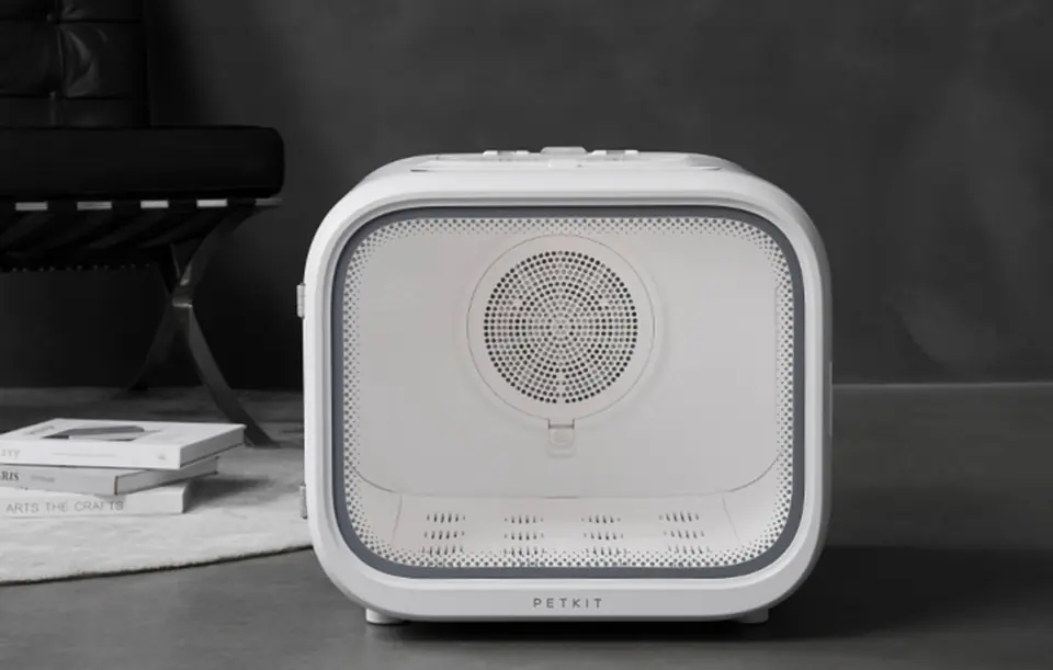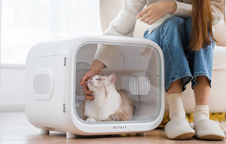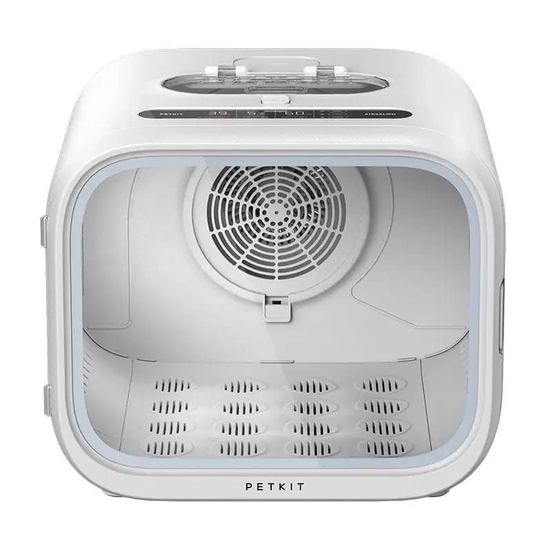 PetKit AIRSALON Max Pro to inteligentna suszarka dla kotów i małych psów starszych niż 6 miesięcy, której funkcje można dostosowywać za pomocą aplikacji PETKIT.
