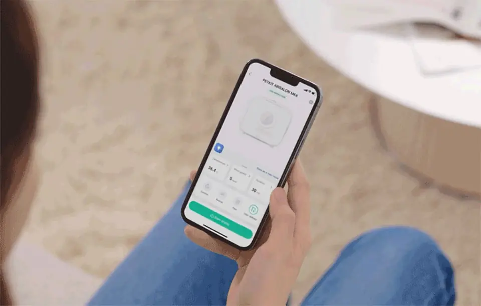 Z pomocą aplikacji PETKIT użytkownik zyskuje wiele nieocenionych funkcji, które ułatwią proces suszenia pupila takich, jak możliwość utworzenia spersonalizowanego trybu suszenia, wybór spośród sześciu prędkości wiatraka, wybór temperatury z przedziału 36-40°C czy też możliwość śledzenia procesu suszenia i otrzymywanie powiadomień.
