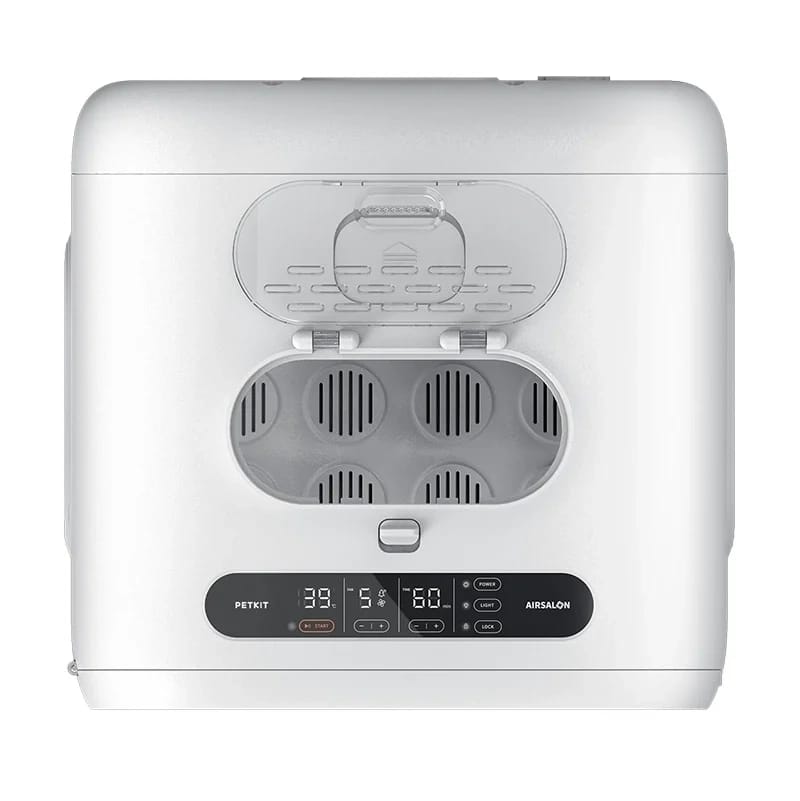 W suszarkę PetKit wbudowane zostały liczne czujniki, których zadaniem jest monitorowanie temperatury i zapobiega przeciążeniu układu elektrycznego. Urządzenie posiada 4 zestawy czujników temperatury, które zapewniają, że nie zmieni się ona ani o więcej, ani o mniej niż 0.3°C. Ponadto, monitorowana jest także poziom wilgotności. AIRSALON MAX Pro posiada także włącznik z bezpiecznikiem i system PTC regulujący przepływ prądu w obwodzie.