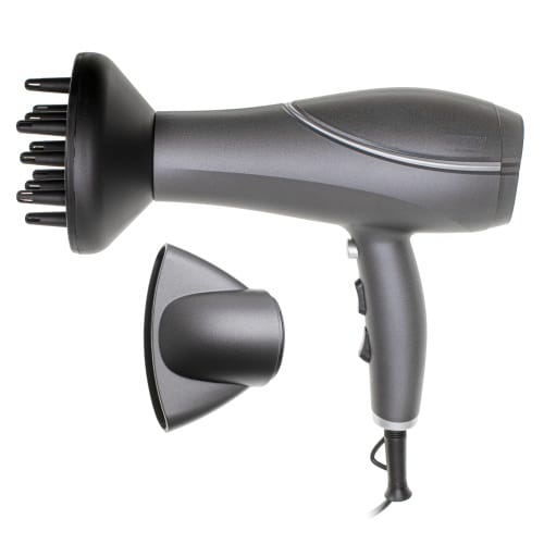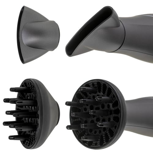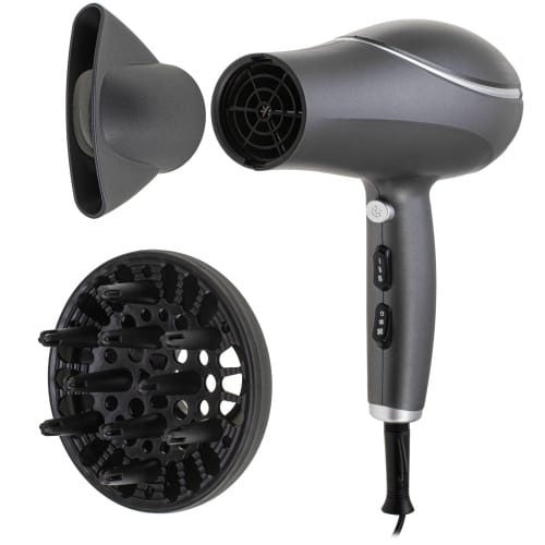 - Funkcja chłodnego nadmuchuTechnologia jonizacjiWyłącznik termicznyKoncentrator powietrzaDyfuzorUchwyt do zawieszaniaPrzewód o długości: 1,8mWymiary produktu: 28cm (szerokość z koncentratorem) x 21cm (wysokość) x 7,5cm (głębokość) Moc: 2200WZasilanie: 220-240V ~50/60Hz Kolor: grafitowa szarość