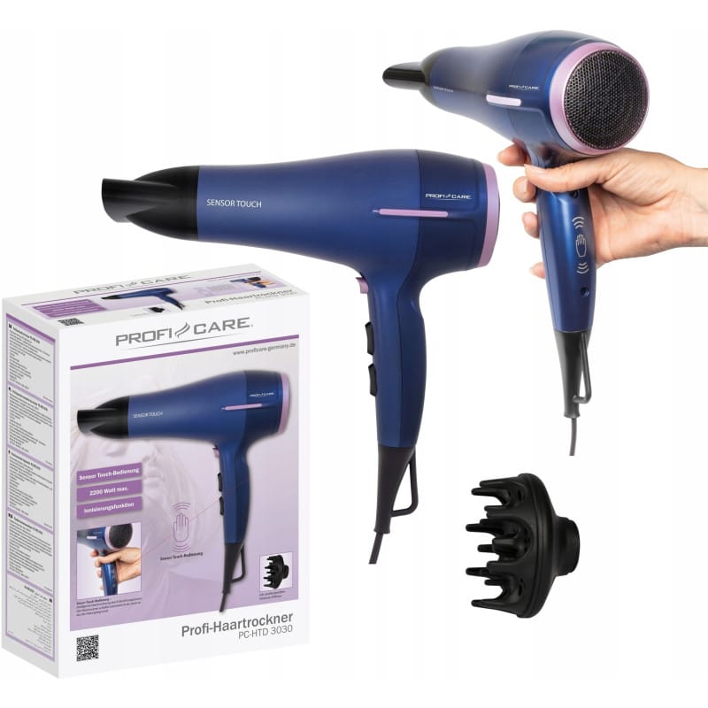 NAJWYŻSZEJ JAKOŚCIPROFESJONALNA SUSZARKADO WŁOSÓW Z DYFUZOREMRENOMOWANEJ FIRMY PROFICAREMODEL: PC-HTD 3030Zadbaj o włosy z profesjonalną suszarką ProfiCare o mocy max 2200 W. Dzięki jonizacji włosy będą gładkie, zdrowe i odpowiednio nawilżone.Możesz je ułożyć zakładając przystawkę, która obraca się o 360° utrwalając fryzurę.Masz do dyspozycji 3-stopniową regulację temperatury, w tym nawiew zimnym powietrzem.ProfiCare PC-HTD 3030 to suszarka dzięki której zadbasz o swoje włosy. Zdrowy połysk osiągniesz dzięki jonizacji, która chroni włosy przed przesuszaniem, łamliwością i przyciąganiem roztoczy i bakterii.Jonizowane powietrze, wytwarzane w suszarce sprzyja także dobremu samopoczuciu. Możesz bez obaw korzystać z ciepłego, mocnego nawiewu w codziennej pielęgnacji włosów, nie martwiąc się więcej o ich stan.Suszarka z funkcją jonizowania polecana jest zwłaszcza w okresie zimowym, kiedy włosy mają tendencję do elektryzowania się i puszenia. Dzięki jonizacji łuski włosów są zamknięte i wygładzone, mają połysk i zdrowy wygląd.Urządzenie posiada 3 stopnie temperatury oraz 2 siły nadmuchu. Dzięki czujnikowi dotykowemu, suszarka wyłącza się automatycznie po odłożeniu.Suszarka posiada wygodny uchwyt do zawieszania, ochronę przed przegrzaniem oraz demontowalny filtr dzięki któremu w łatwy sposób wyczyścimy wlot powietrza suszarki. Najważniejsze cechy suszarki do włosów ProfiCare PC-HTD 3030:Trzy stopnie temperaturyDwa stopnie siły nadmuchuTryb zimnego nadmuchuInteligentne suszenie włosów za pomocą czujnika dotykowego. Suszarka wyłącza się automatycznie po odłożeniuFunkcja jonizacji - lepsze układanie fryzury dzięki efektowi antystatycznemuZdejmowana dysza formująca z możliwością obrotu o 360°Zdejmowany filtr na wlocie powietrzaZaczepy do powieszeniaOchrona przed przegrzaniemZasilanie elektryczne: 230 V~, 50/60 HzPowiedz nie puszącym się włosom!Jonizacja to proces, podczas którego wytwarzane są jony ujemne, dzięki czemu zwalczane są negatywne skutki działania gorącego powietrza. Suszarka neutralizuje jony dodatnie, co zapobiega mocnemu naelektryzowaniu i puszącym się włosom. Jej zadanie to sprawienie, aby włosy po ich myciu i suszeniu nie straciły swojego blasku, wyglądały zdrowo oraz były nawilżone i mniej podatne na uszkodzenia.Dla najbardziej wymagających włosówDyfuzor ma duże znaczenie zwłaszcza w przypadku włosów kręconych, wymagających szczególnej troski. W pielęgnacji loków najlepiej sprawdzi się suszarka z nasadką o krótkich kolcach, która pomoże ujarzmić niesforne fale i nada fryzurze pożądany kształt.Jescze większa moc nawiewuKoncentrator jest to wąska końcówka nakładana na suszarkę, zwiększa siłę nawiewu (nie na całej powierzchni włosów, lecz w ściśle określonym punkcie). Wykorzystywana jest głównie przy zabiegach prostowania falujących lub lekko skręconych kosmyków.Ustaw temperaturę tak jak lubisz!Regulacja temperatury pozwala na dostosowanie ciepła tak, aby nie zniszczyć włosów oraz jednocześnie ich stylizację. Często rezygnacja z najwyższych temperatur pozwoli na uzyskanie zupełnie nowej stylizacji. Wymiary suszarki:Wymiary (ok. szer. x wys. x gł.) i wagaUrządzenie: 210 x 280 x 90 mm; 0.6 kgOpakowanie: 225 x 290 x 100 mm; 0.8 kg Produkt został odznaczony certyfikatem FOCUS - TEST DEUTSCHLANDS BESTECertyfikat TEST DEUTSCHLANDS BESTE został przyznany na podstawie badań przeprowadzonych przez „Germanys best household electronics”. W ramach testu porównane zostały produkty z ponad 20 000 marek z 274 segmentów rynkowych.Celem wyróżnienia „Focus” jest wskazywanie produktów cieszących się największym uznaniem konsumentów. Certyfikat przyznany jest na podstawie badań niemieckiego rynku i potwierdza wysoką jakość produktów a także świadczy o dużym zaufaniu konsumentów i renomie marki.slimtex