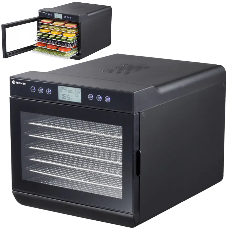 Kod producenta: 229064Suszarka do żywności marki Hendi sprawdzi się w małej i dużej gastronomii, gospodarstwach agroturystycznych, przedsiębiorstwach zajmujących się przetwórstwem rolno-spożywczym, a także domach miłośników przetworów.Urządzenie idealne do suszenia szerokiej gamy produktów: grzybów, ziół, mięsa oraz warzyw i owoców. Suszenie żywności to metoda konserwowania w pełni naturalna, gwarantująca zachowanie wysokich wartości odżywczych i smakowych.Cechy produktu: