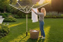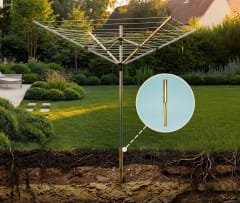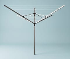 Suszarka ogrodowa czteroramienna PROMIS SU200- 50m przestrzeni do suszenia- wytrzymała konstrukcja- środkowy słupek i ramiona wykonane z aluminium- łatwa w montażu i gotowa do instalacji- składana - gwarantuje łatwy transport i przechowywanie- regulację wysokości 180-200 cm- liczba ramion 4- odporna na warunki atmosferyczne- wysokość 180cm- kolec uziemiającyProsta instalacja- wybierz odpowiednie miejsce do ustawienia suszarki- upewnij się, że jest wystarczająco dużo miejsca, aby ramiona mogły się swobodnie obracać- włóż słup do kolca uziemiającego i wbij w ziemię- używając mechanizmu podnoszenia, podnieś, rozłóż i zablokuj ramiona- zawieś pranie na sznurkach- po użyciu zwolnij mechanizm podnoszącyWymiary suszarki złożonej- długość 180 cm- szerokości 14 x 12 cmWymiary susarki rozłożonej:- wysokość 180-200 cm- długość ramienia - 142 cm