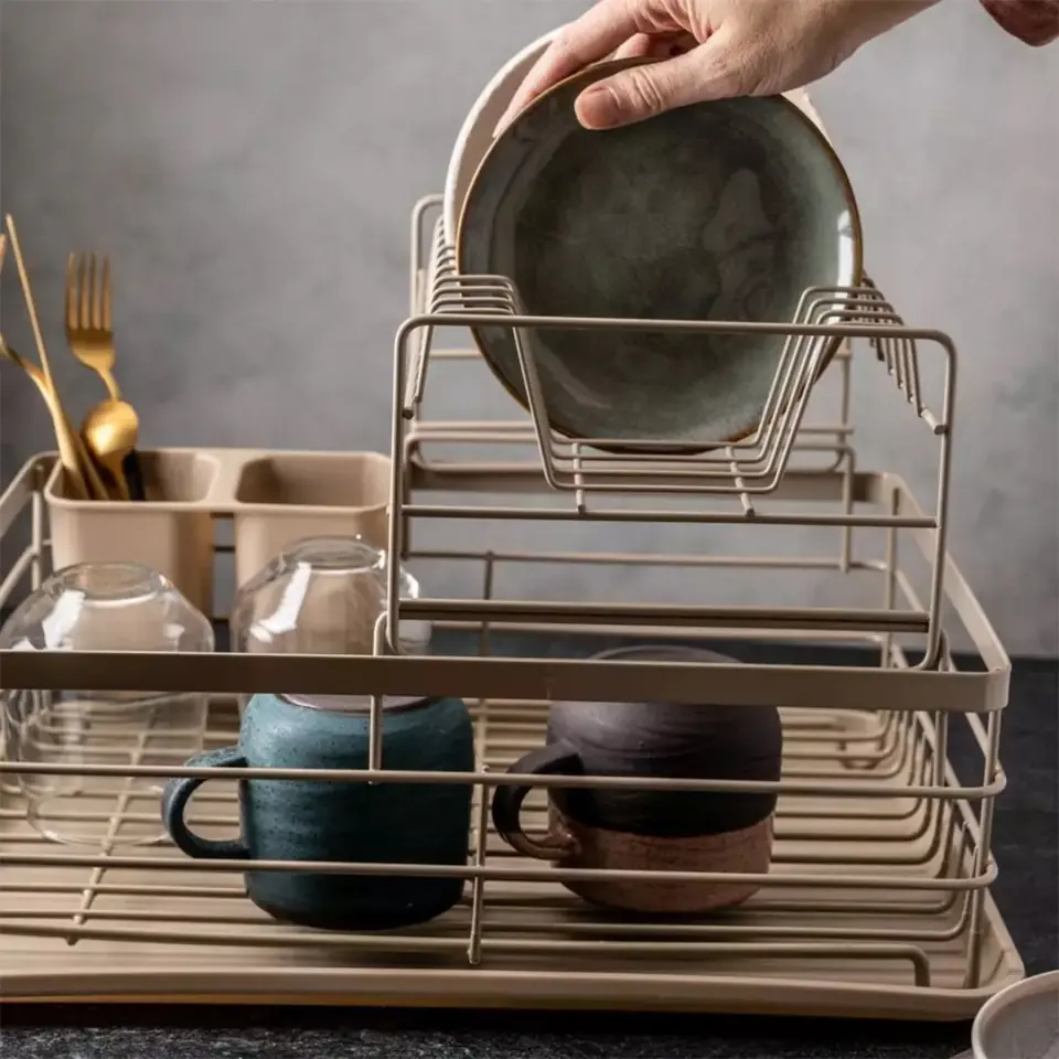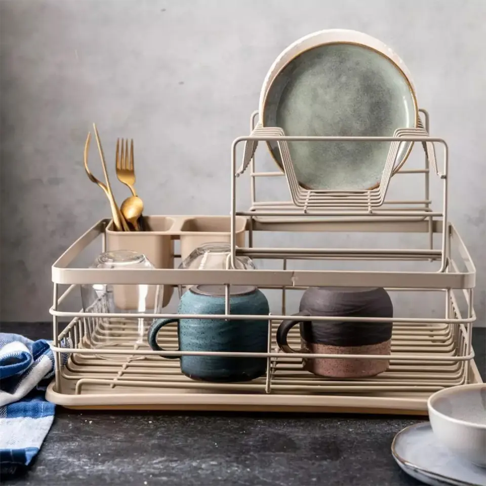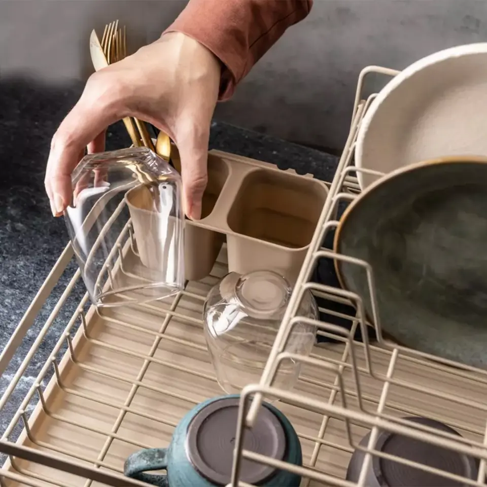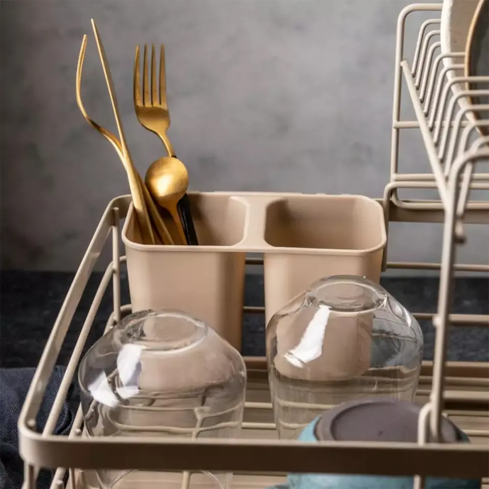 Suszarka znajdzie swoje zastosowanie zarówno w dużej, jak i małej kuchni. Uniwersalny kolor sprawia, że będzie dobrze wyglądać w każdym wnętrzu. Ociekacz do naczyń został wyposażony również w praktyczny pojemnik na sztućce. Podział na 2 komory sprawia, że w prosty sposób możemy posegregować łyżki, widelce i noże. Produkt ułatwia więc zachowanie porządku w kuchni. Suszarka do naczyń dwupoziomowa jest stabilna, co zapewnia bezpieczeństwo użytkowania. Dzięki temu, nie ma ryzyka przewrócenia, nawet przy dużym obciążeniu naczyniami.