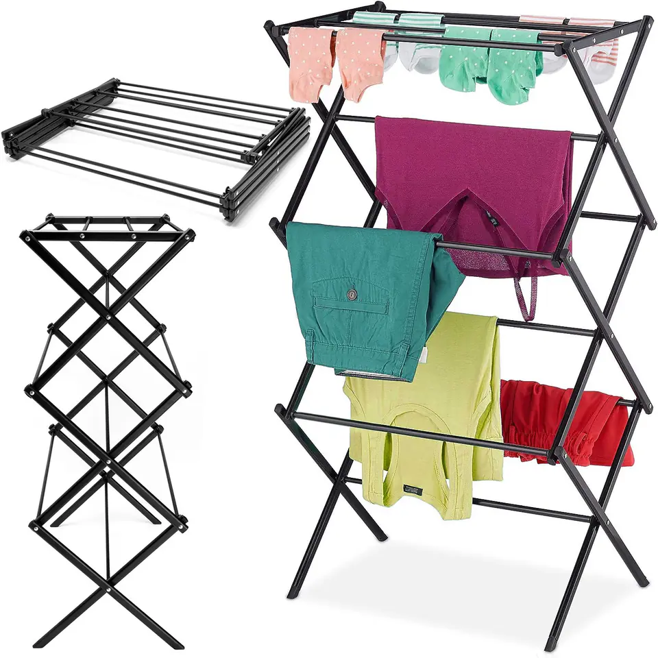 Suszarka wolnostojąca na pranie KARLAPrzeznaczenie: suszenie bielizny i garderoby | Kolor: czarny Suszarka na pranie Karla to doskonałe rozwiązanie dla każdego domu, łącząc wysoką jakość materiałów, estetyczny design i praktyczną funkcjonalność. Wykonana z trwałej stali malowanej proszkowo i mocnego tworzywa sztucznego, suszarka prezentuje się elegancko dzięki matowemu czarnemu kolorowi, który doskonale komponuje się z każdym wnętrzem. Jej składana konstrukcja sprawia, że łatwo można ją przechowywać, zajmując minimalną przestrzeń po złożeniu. Maksymalne obciążenie wynosi 15 kg, co świadczy o jej solidnej wytrzymałości. Dodatkowo, zaledwie 2,22 kg wagi netto sprawia, że suszarka jest lekka i łatwa w transporcie oraz obsłudze. Uniwersalne zastosowanie sprawia, że doskonale sprawdzi się w każdym rodzaju domu czy mieszkaniu, spełniając oczekiwania tych, którzy cenią sobie praktyczne i estetyczne rozwiązania Zalety:✅Wysoka jakość materiałów: Wytrzymała stal malowana proszkowo i mocne tworzywo sztuczne.✅Estetyczny design: Elegancki matowy czarny kolor, pasujący do każdego wnętrza.✅Składana konstrukcja: Łatwa w przechowywaniu, zajmuje mało miejsca po złożeniu.✅Duża wytrzymałość: Maksymalne obciążenie wynosi 15 kg.✅Lekka: Waga netto wynosi tylko 2,22 kg, co ułatwia transport i obsługę.✅Uniwersalne zastosowanie: Idealna do każdego rodzaju domu czy mieszkania. SpecyfikacjaMateriał: Stal malowana proszkowo, tworzywo sztuczne (PP)Kolor: czarny matPrzeznaczenie: Do użytku domowego, idealna do suszenia ubrańWaga z opakowaniem: 2,66 kgWaga: 2,22 kgMaksymalne obciążenie: 15 kg WymiaryWysokość: 103,5 cmSzerokość: 72,5 cmGłębokość: 38 cmWymiary po złożeniu: 72 x 52 x 11 cm Informacje dodatkowePrzedstawione kolory należy traktować poglądowo - mogą odbiegać od rzeczywistych ze względu na różne ustawienia monitorów oraz proces obróbki zdjęć. Rzeczywiste wymiary mogą się różnić od podanych wyżej. Tolerancja błędów może wynosić +/- 5%.Marka:GockowiakKod EAN:MG3061956Kolor:czarnyWysokość: 103,5 cmSzerokość:72,5 cmGłębokość:38 cmWymiary po złożeniu:72 x 52 x 11 cm