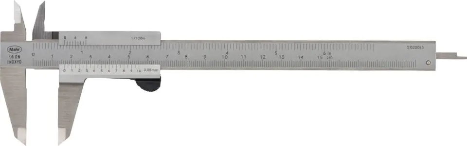 Wykonanie: ze stali nierdzewnej, hartowanej. Noniusz i podziałka szyny chromowane matowo, podziałka główna dla ochrony przed zużyciem lekko zagłębiona, z prostokątnym głębokościomierzem , na tylnej stronie tabela gwintów. Dostawa w etui.