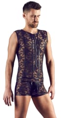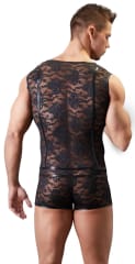 - Model: Męskie body z kwiecistej koronki i paskami wetlook