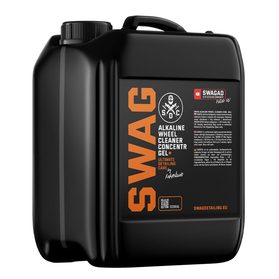 Swag ALKALINE WHEEL CLEANER CONCENTR. GEL+ V.2 jest to profesjonalny Cleaner o zasadowym pH i dużej sile działania. Został stworzony dla Studiów Detailingowych i Entuzjastów autokosmetyki, którzy poszukują skutecznego i bezpiecznego produktu do usuwanie zabrudzeń felg pojazdów spowodowanych bieżącą eksploatacją.