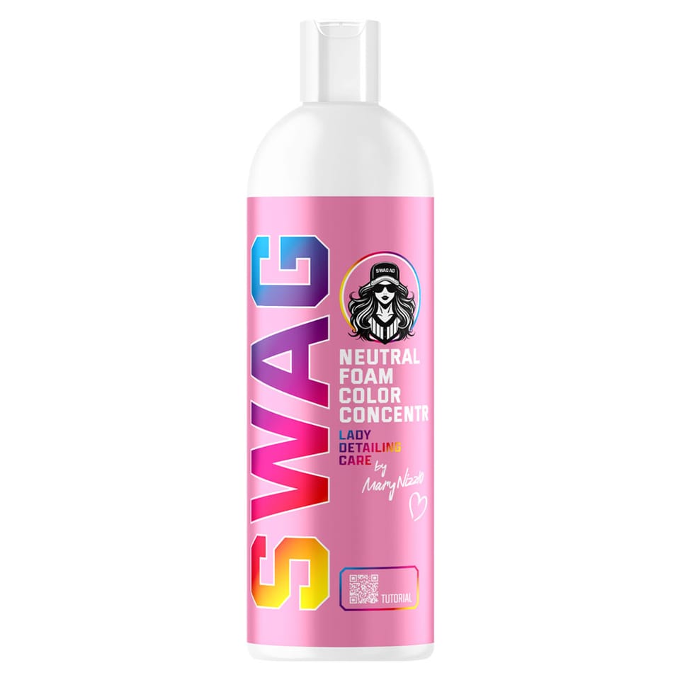 Swag LADY NEUTRAL FOAM COLOR jest to profesjonalna aktywna piana o neutralnym pH i intensywnej barwie. Stworzona została dla Studiów Detailingowych i Miłośniczek autokosmetyki, które poszukują skutecznego i bezpiecznego produktu do wstępnego mycia pojazdów.