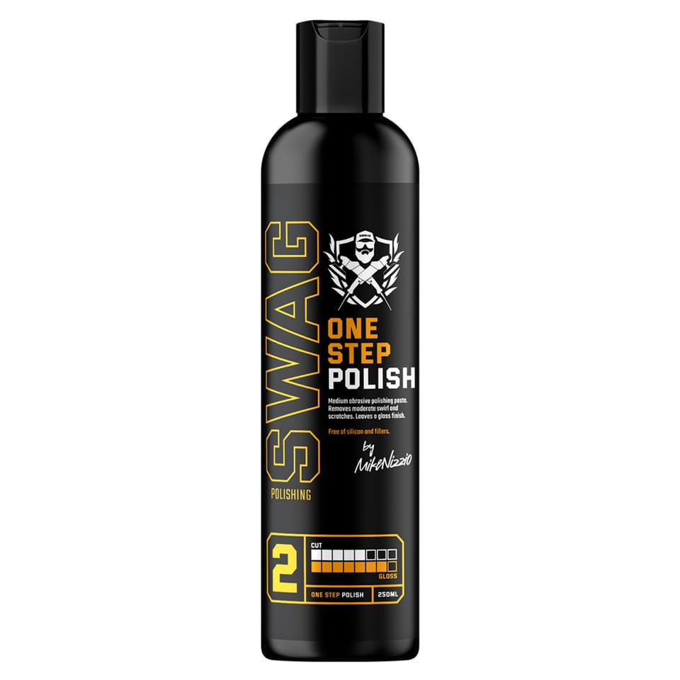 Swag ONE STEP POLISH jest to średnio ścierna pasta polerska typu One step. Została stworzona dla wszystkich Studiów Detailingowych i Entuzjastów, którzy potrzebują zaawansowanego i bezkompromisowego produktu do przeprowadzenia błyskawicznej korekty lakieru na wysokim poziomie.