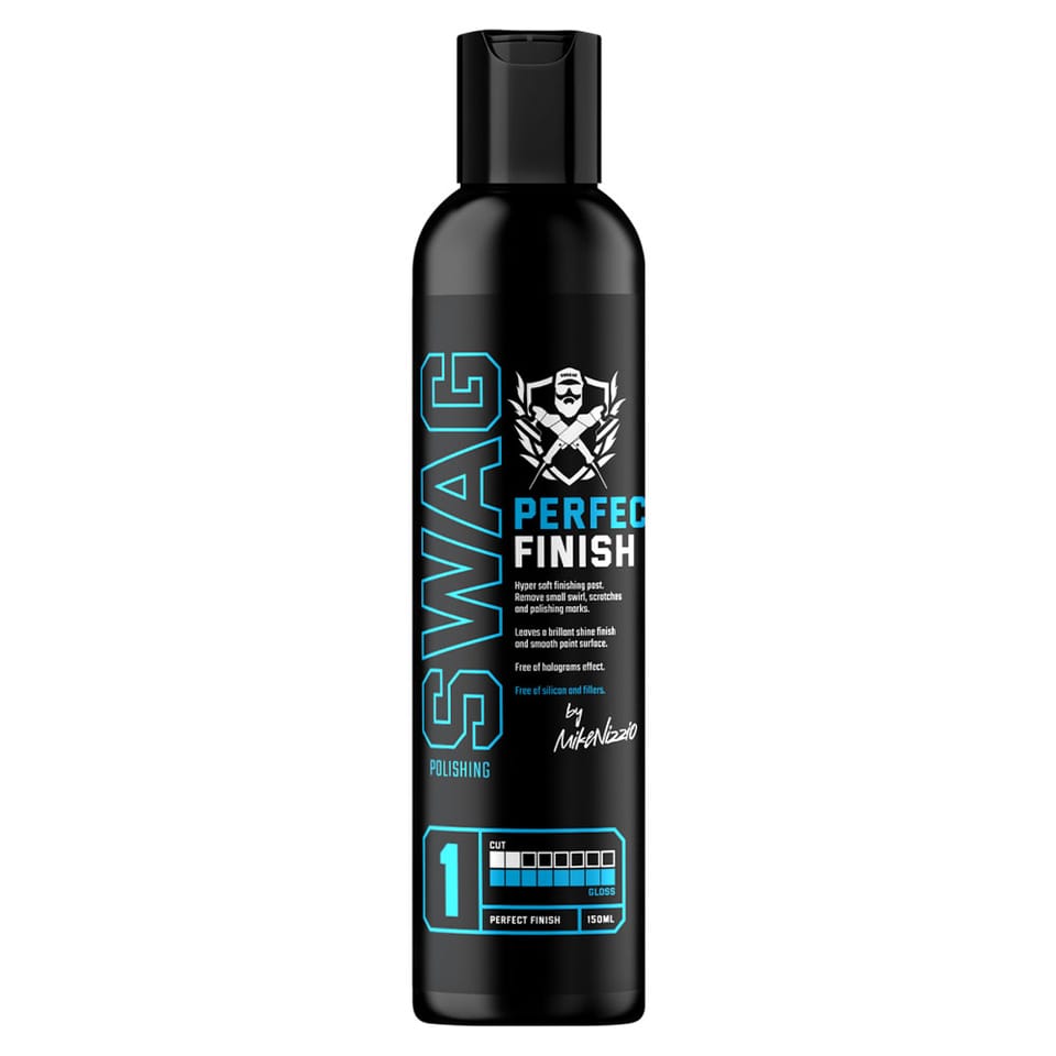 Swag PERFECT FINISH V.2 jest to ultra delikatna pasta polerska typu Finish. Została stworzona dla wszystkich Studiów Detailingowych i Entuzjastów autokosmetyki, którzy potrzebują zaawansowanego i bezkompromisowego produktu do usunięcie hologramów po agresywnej korekcie lakieru, a także zniwelowania większość drobnych degradacji takich jak kolistych zarysowań typu ''swirle'', które powstają w trakcie użytkowania pojazdu.