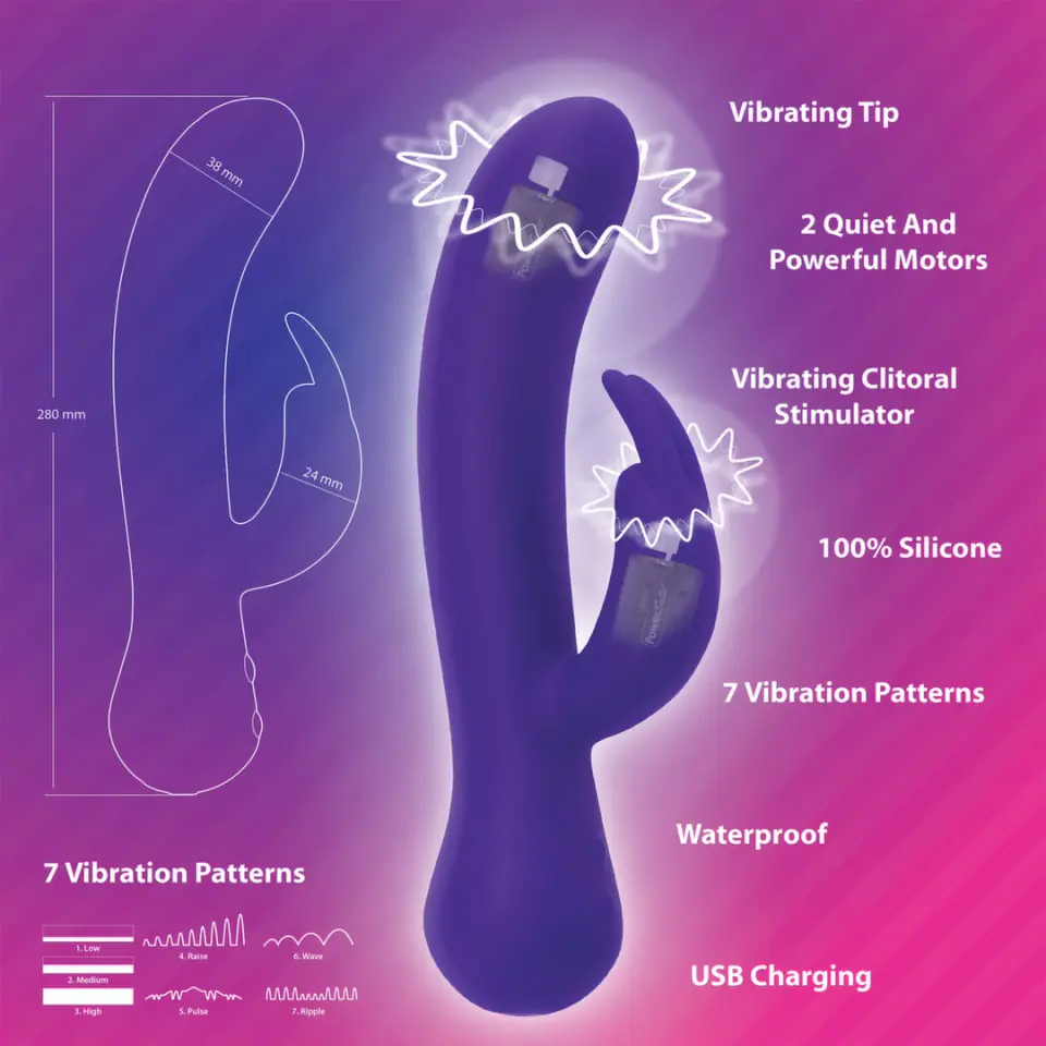 Swan The Majestic Swan Special Edition wyposażony został w dwa niezależne silniczki PowerBullet, ktore oferują aż 4 wzory pracy i 3 poziomy intensywności każdy. Specjalnie zaprojektowany, wygięty anatomicznie korpus umożliwia precyzyjne dopasowanie, a elastyczna konstrukcja pozwala na wygodne użytkowanie. Dodatkowe „uszy” na powierzchni urządzenia zapewniają poszerzoną strefę działania oraz możliwość wyboru, czy oba silniczki pracują rownolegle, czy niezależnie od siebie. Intuicyjny system sterowania przyciskami pozwala łatwo dostosować tryb pracy do własnych preferencji.