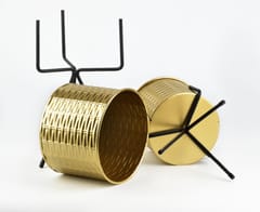 Komplet 2 złotych tłoczonych osłonek z serii SWEN marki MONDEX. Połączenie złota i czerni sprawia iż sprawdza się w każdym nowoczesnym i eleganckim wnętrzu nadając mu szyku. Najmodniejszy look ostatniej dekady! wymiary całości: L:20xh37cm M:18xh30cm osłonka L: 20xh15cm stojak h33cm/nóżki 22cm osłonka M: 18xh15cm stojak h21.5/nóżki 15cm