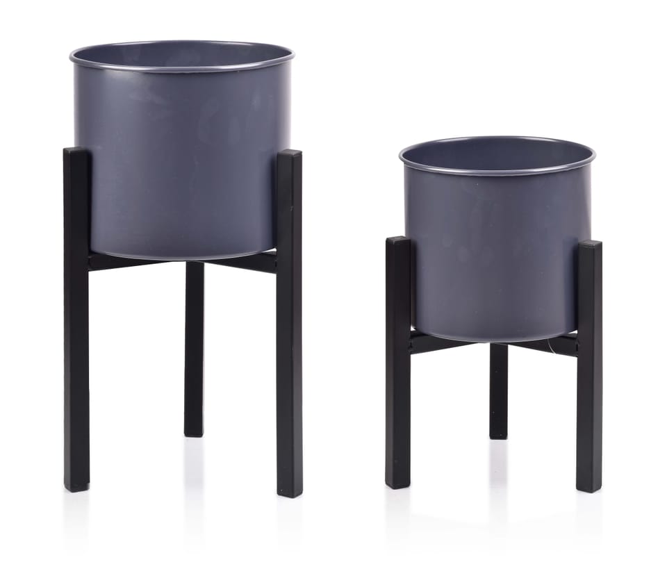 Nowoczesny metalowy zestaw 2 osłonek w kolorze szarym na czarnym stojaku z serii SWEN marki MONDEX. Idealnie sprawdzi się w nowoczesnym wnętrzu.wymiary L: całość:śr.24xH45cm sama doniczka: śr. 24xH20cm wymiary M: całość:śr.21xH34cm sama doniczka: śr. 21xH18cm