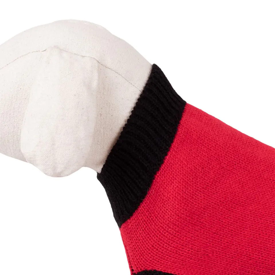 Sweterek czerwony z kieszonką dla psa rozmiar M Lekki i ciepły sweterek z naszytą ozdobną kieszonką. Wygodny oraz miękki w dotyku, zakładany przez głowę, ze ściągaczem przy szyi. Krój idealnie dopasowany do sylwetki zwierzęcia gwarantuje doskonałą ochronę przed chłodem w okresie jesienno-zimowym. Długość grzbietu 30 cm. wygodny i miękki w dotyku z kieszonką na plecach ze ściągaczem przy szyi można prać w temp. 30°C Rozmiar: M, 30 cm Materiał wykonania: 100% akryl Kolor : czerwony w elementami czerni i bieli stara nazwa: 410M sweterek czerwony kość M-30cm