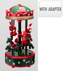 ŚWIĄTECZNA KARUZELA OBROTOWA Z MELODIĄ 60 CM ZASILACZ 8 LED to ruchoma dekoracja, która ożywia Święta! Karuzela łączy w sobie magię światła, ruchu i tradycyjnych świątecznych postaci. Każdy obrót przenosi Cię w świat dziecięcej radości i beztroski. To nie tylko ozdoba, ale świąteczny spektakl w miniaturze, który zachwyci całą rodzinę i każdego gościa.