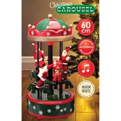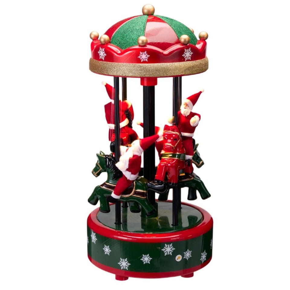 Karuzela obrotowa 60 cm z melodią „Jingle Bells” i 8 LED to dekoracja, która ożywa: kręci się, świeci i gra! Zasilana z sieci, działa bez przerw, wprowadzając do wnętrza ciepło i radość Bożego Narodzenia.Zachwyca detalami, zachwyca dźwiękiem – święta zaczynają się tu!