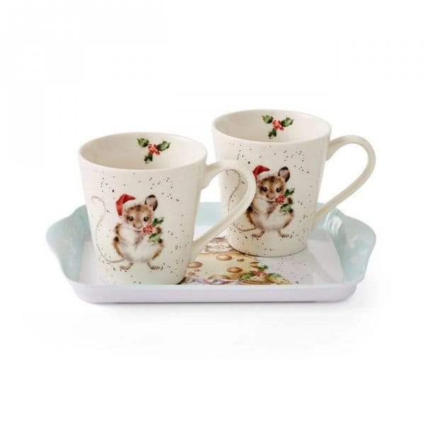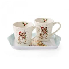 Świąteczne Myszki i Ser Kubki Porcelanowe & Tacka 3 szt.