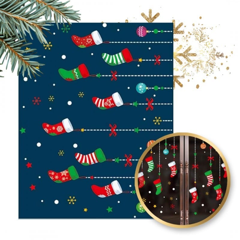 Świąteczne naklejki kolorowe na okno 2 Arkusze 30 x 45 cm NKD24
