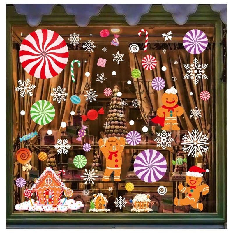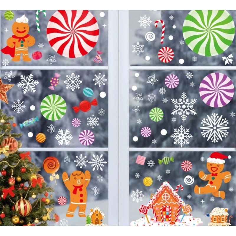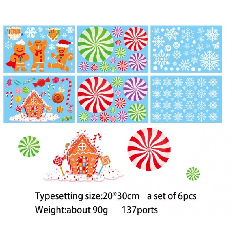Świąteczne naklejki kolorowe na okno 6 Arkuszy 20 x 30 cm NKD14