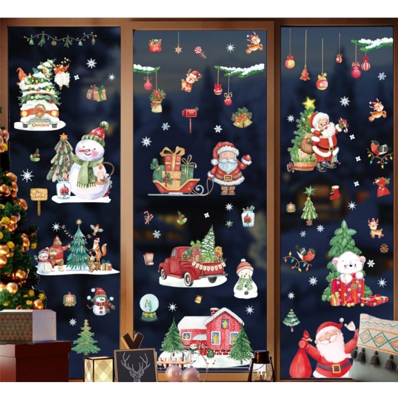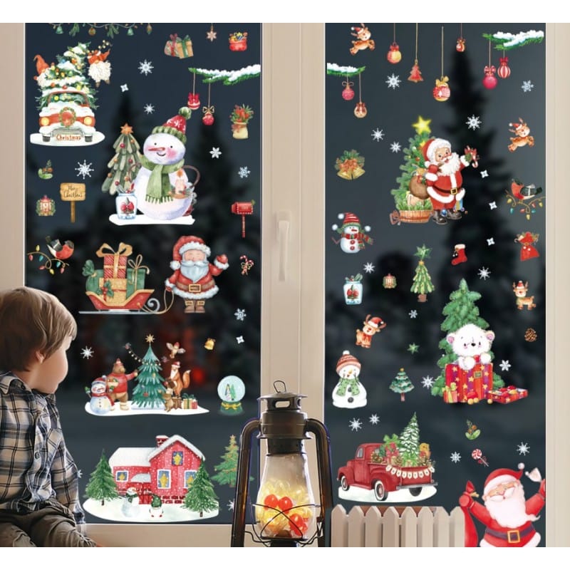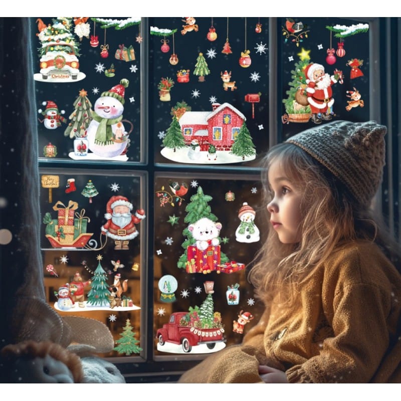 Świąteczne naklejki kolorowe na okno 9 Arkuszy 20 x 30cm NKD12