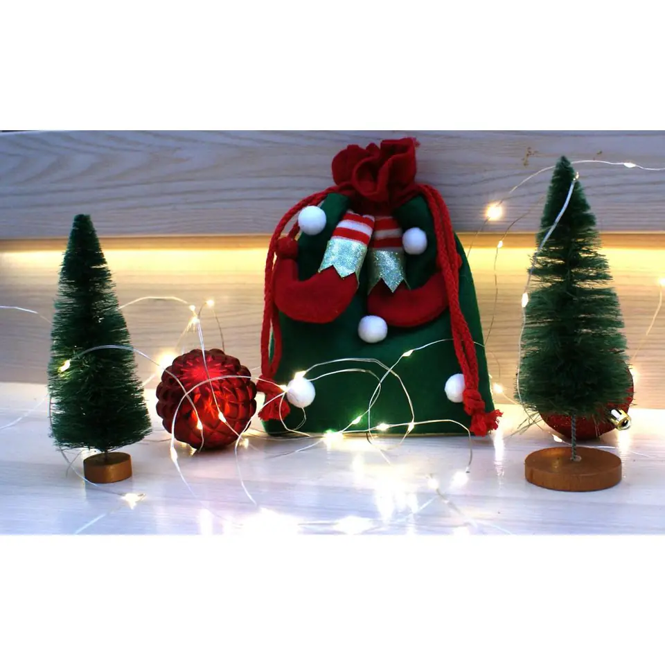 Parametry:- Wymiary ok.: 15 x 20 cm (szer. x wys.)Materiał: poliesterKolor: zielony, czerwonyWaga netto ok.: 0,019 kgWaga brutto ok.: 0,020 kgWymiary produktu w opakowaniu ok.: 15 x 5 x 15 cm (szer. x gł. x dł.)Marka: Saska Christmas