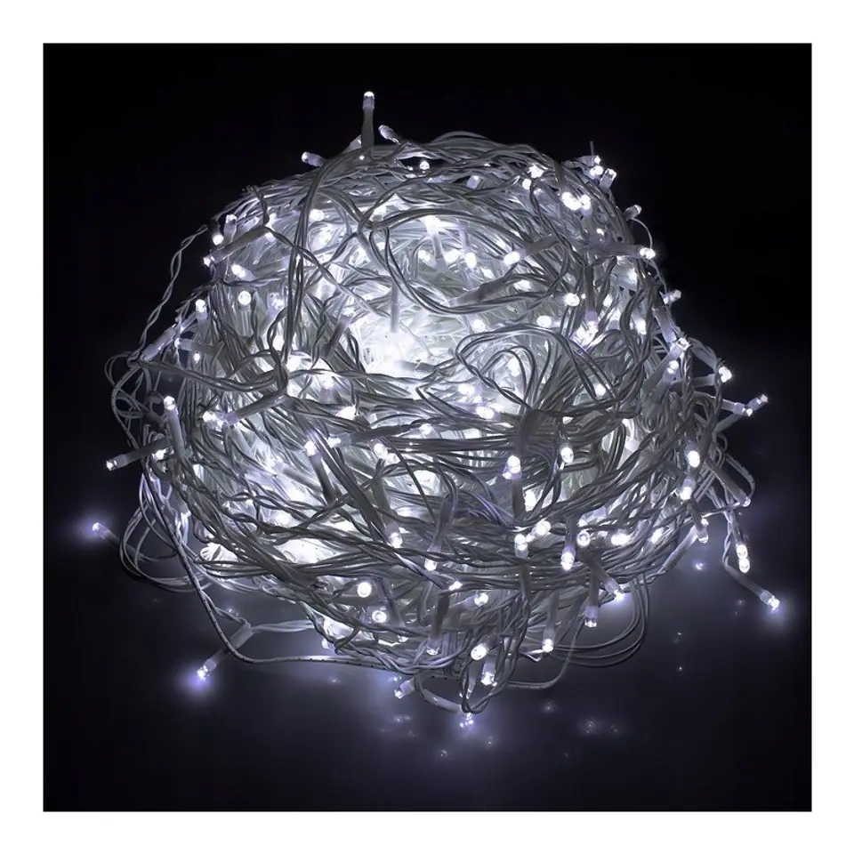 Światełka SOPLE LED z efektem FLASH Specyfikacja:- 300 światełek LED.- Długość girlandy: 12m + 1,2m- Kolor kabla - biały.- Możliwość łączenia szeregowego dwóch kompletów. Spakowane w kolorowym kartoniku.