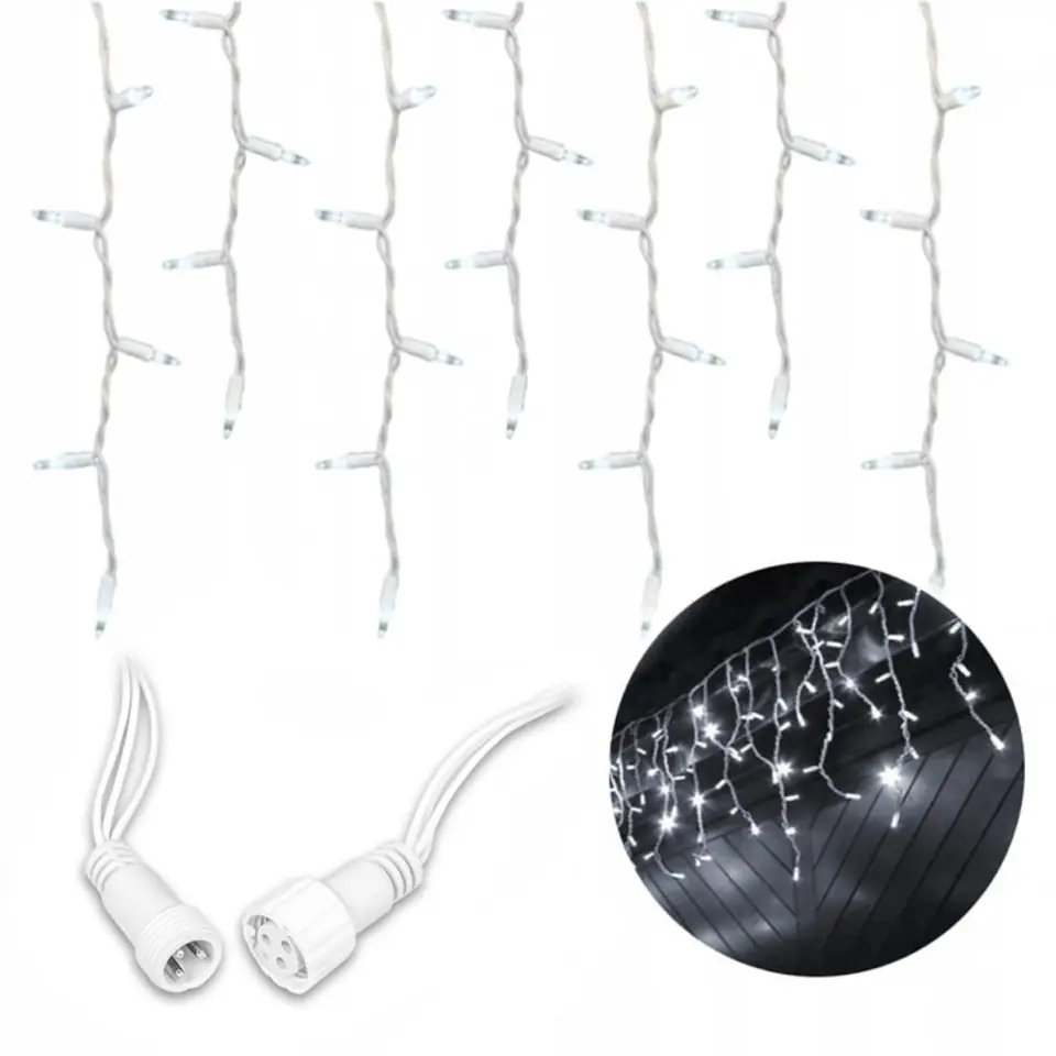 Światełka Sople 300 LED dekoracja Zimny Biały, Flash Biały LAMP06B