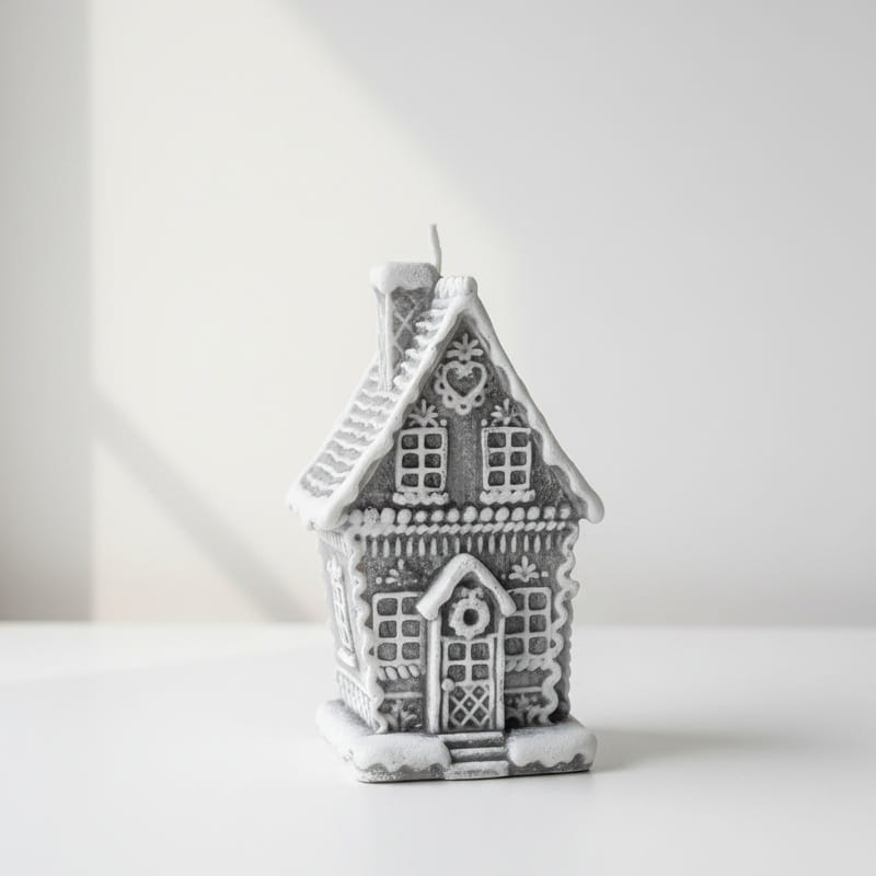 Świeca CHATKA PIERNIKOWA duża 11x19cm parafinowa szara
