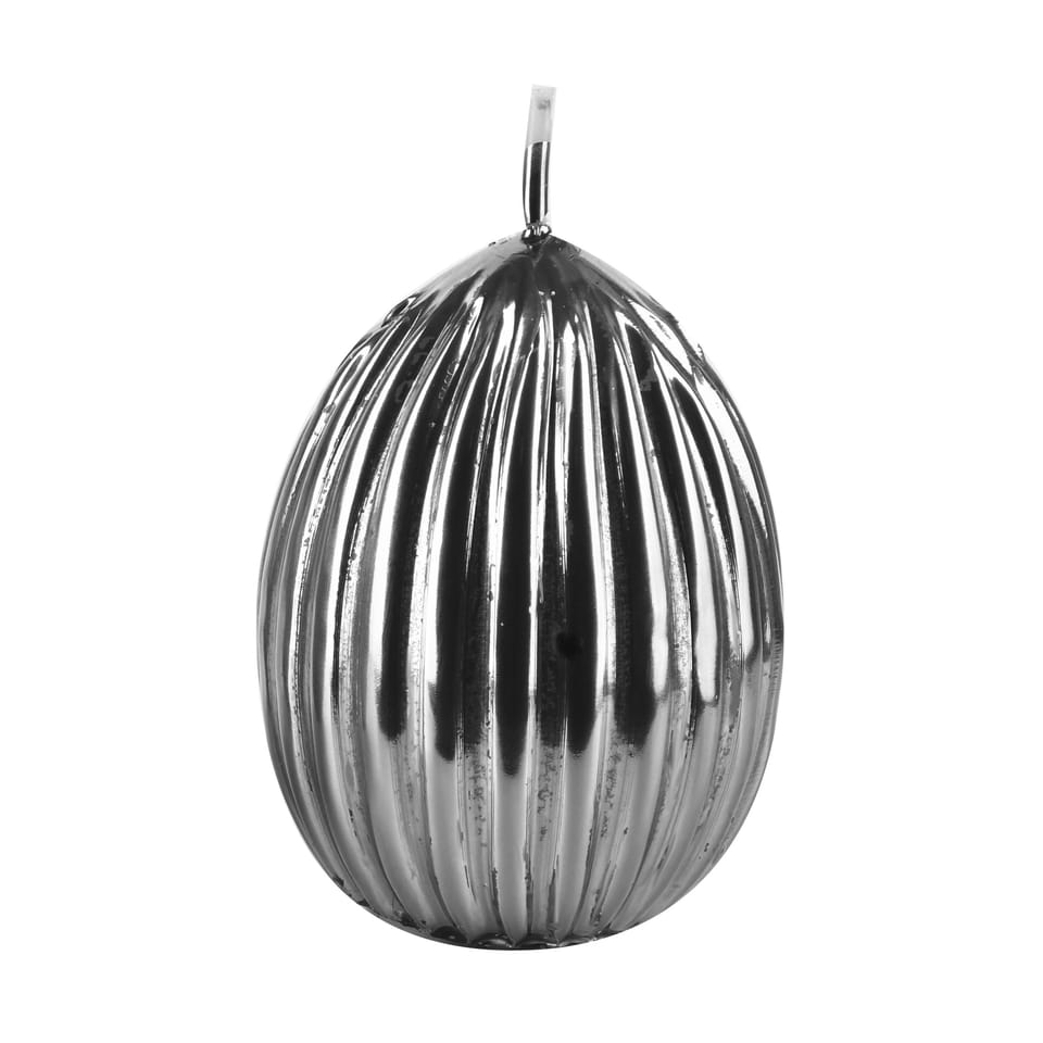 Świeca JAJKO KARBOWANE małe 6,5x8cmsrebrne