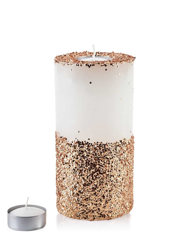 ŚWIECA LAMPION WALEC 120X240 DIAMENT BIAŁY ZŁOTE KRYSZTAŁKI