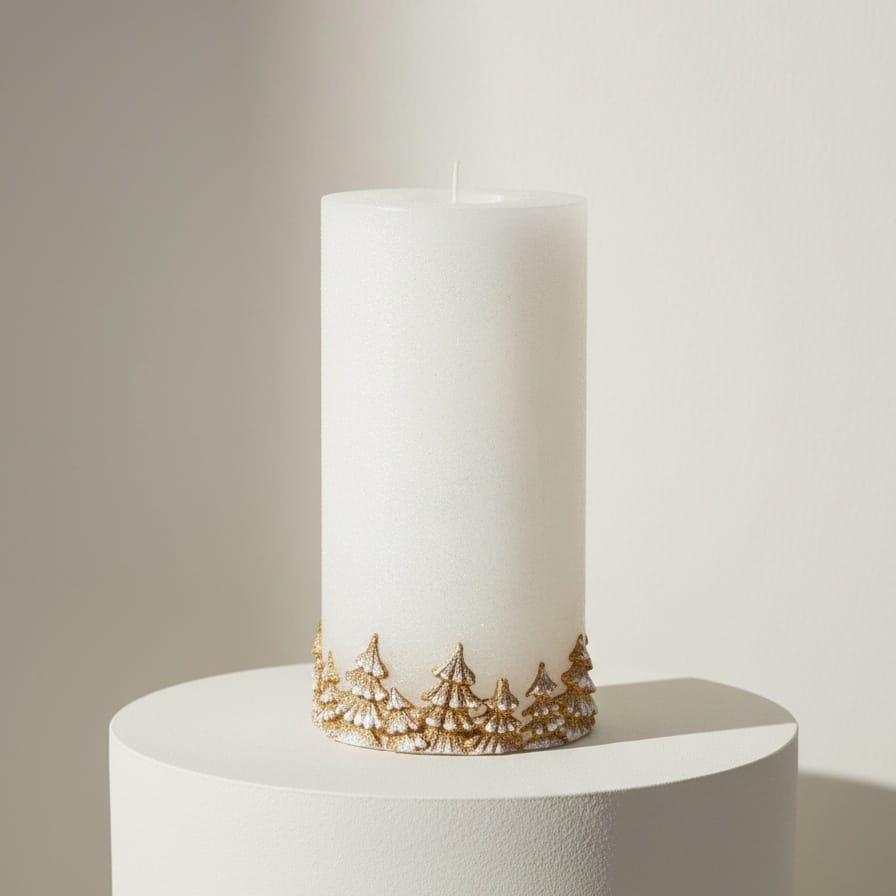 ŚWIECA LAMPION WALEC LAS BIAŁO ZŁOTY 240