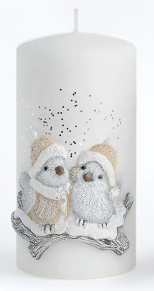 Świeca PTASZEK KAROLEK walec mały 7xh10cm parafinowa biała