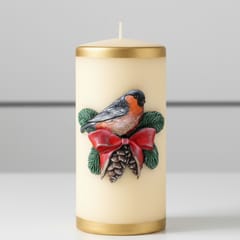 Świeca ZIMOWY PTASZEK walec duży 7x17,5cm parafinowa kremowa