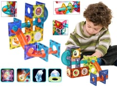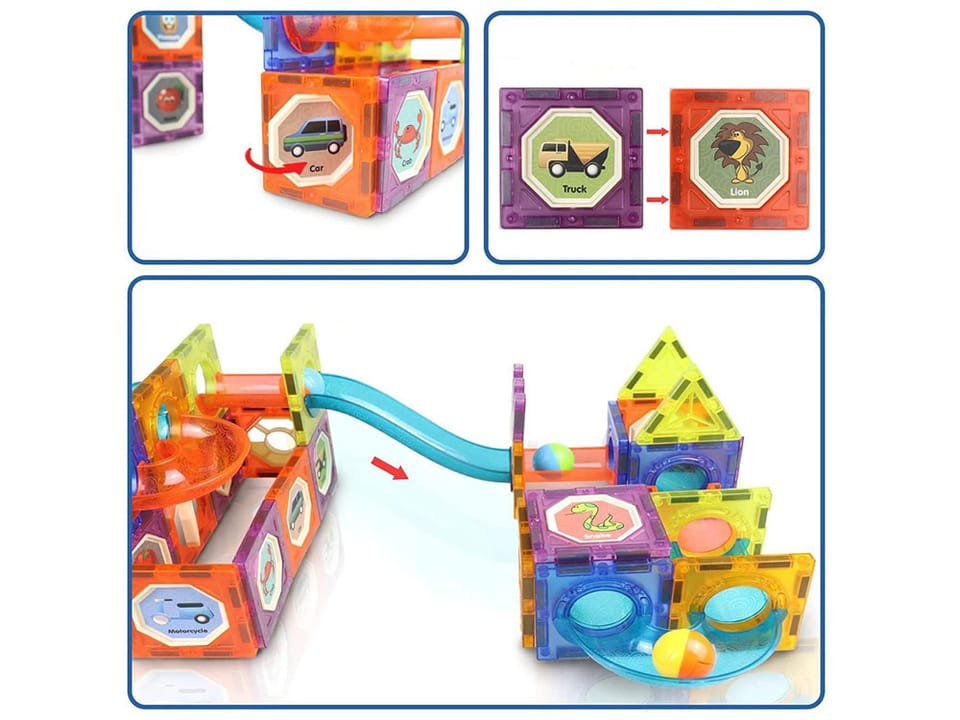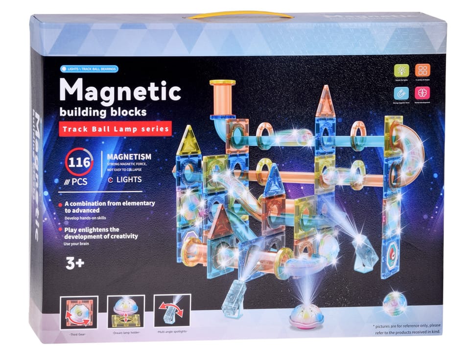 Klocki magnetyczne przyciągają się ze sobą w prosty sposób, co sprawia, że łączenie elementów jest łatwe i intuicyjne nawet dla młodszych dzieci. Dodatkową atrakcję stanowią świecące elementy - reflektory, piłeczki oraz światełka w różnych kształtach, które rozświetlają budowle i sprawiają, że całość wygląda niezwykle efektownie, zwłaszcza w ciemniejszym pomieszczeniu.