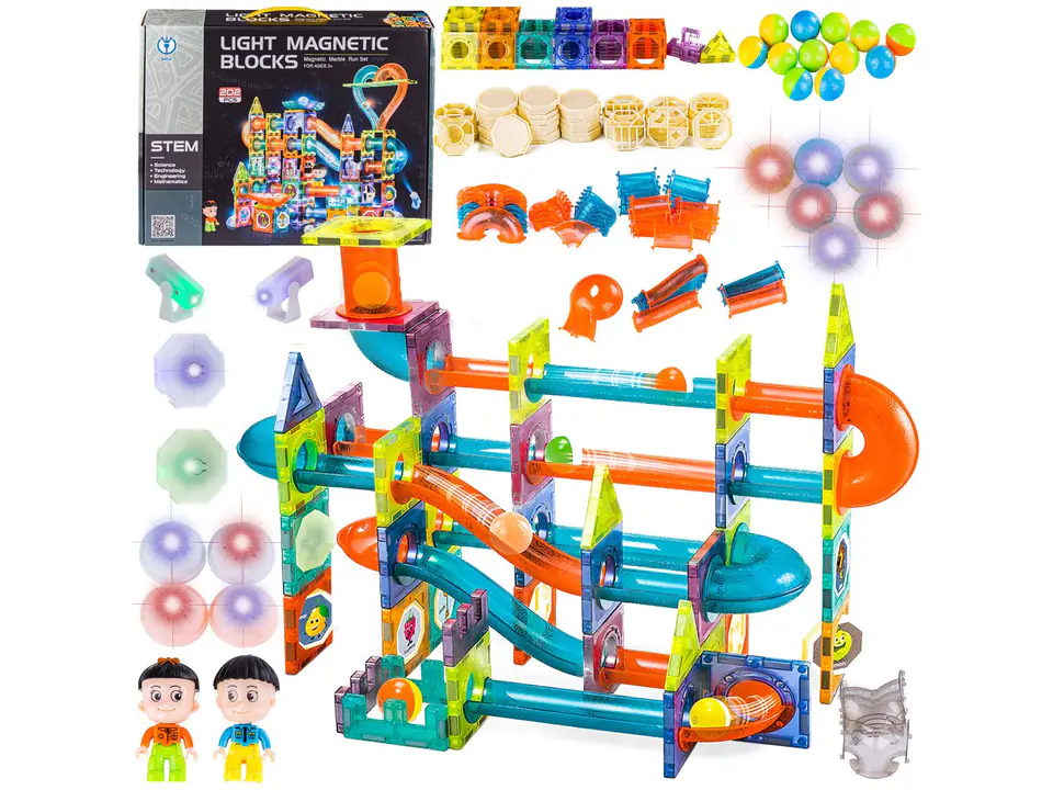 Świecące Klocki Magnetyczne, Tor Kulkowy Dla Kulek 202 Elementy Kulodrom