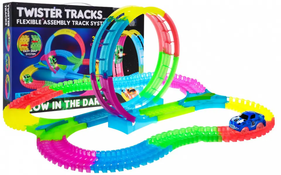Świecący w ciemności Tor wyścigowy dla dzieci 3+ Autko LED + Pętla 360 + Konstrukcja 132 el.
