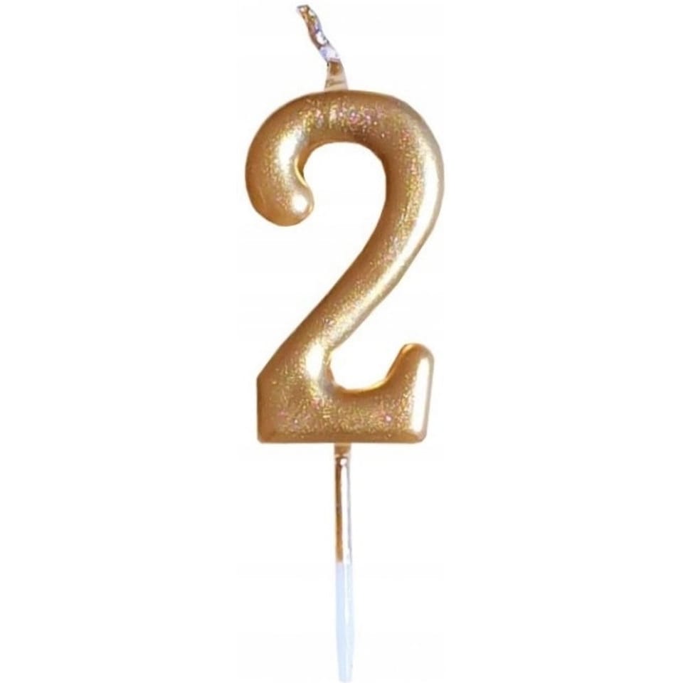 ŚWIECZKA urodzinowa CYFERKA 2 metaliczna zlota GO PARTY