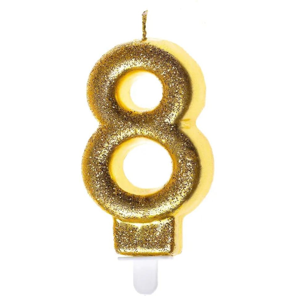 Brokatowa ŚWICZEKA urodzinowa cyfra 8 zlota GO PARTY