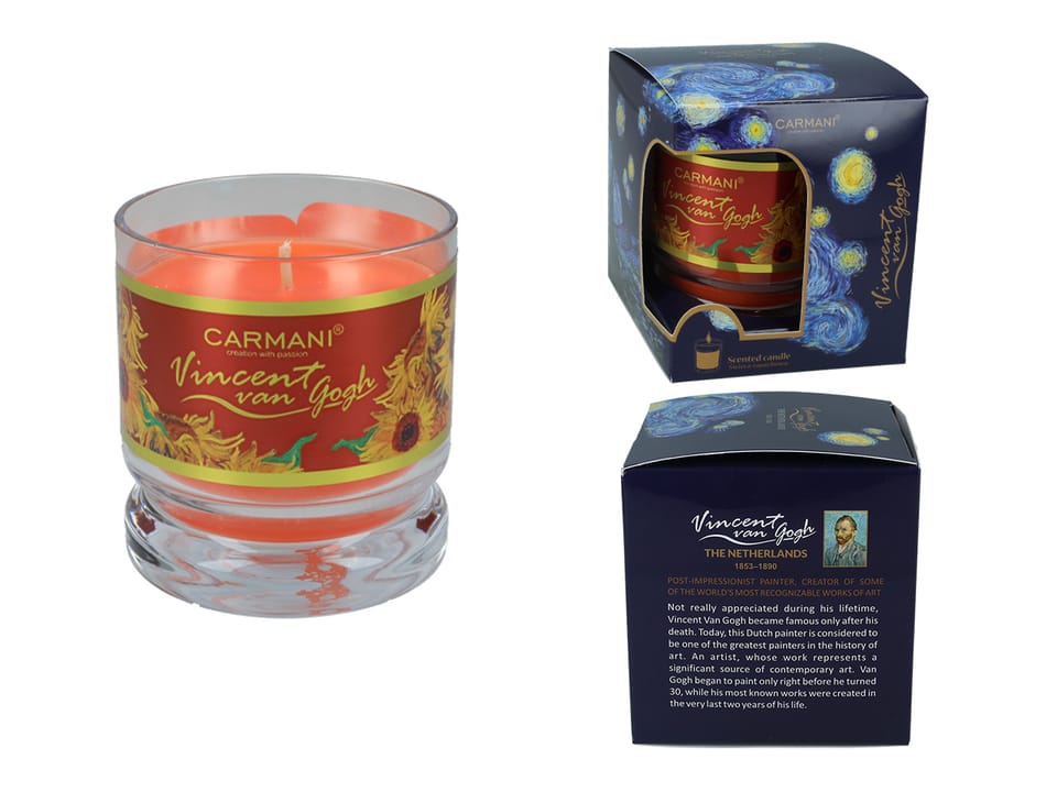 Świeczka w szkle - V. van Gogh, Słoneczniki, Szarlotka z cynamonem CARMANI