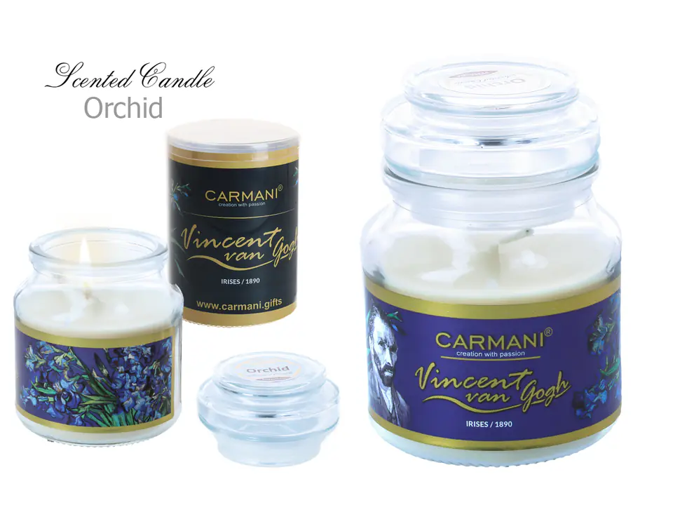 Świeczka zapachowa, american mały - V. Van Gogh, Irysy, Orchid CARMANI