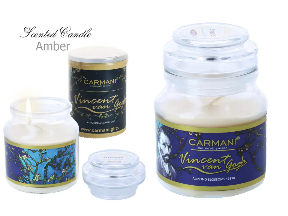 Świeczka zapachowa, american mały - V. van Gogh, Kwitnący Migdałowiec, Amber CARMANI