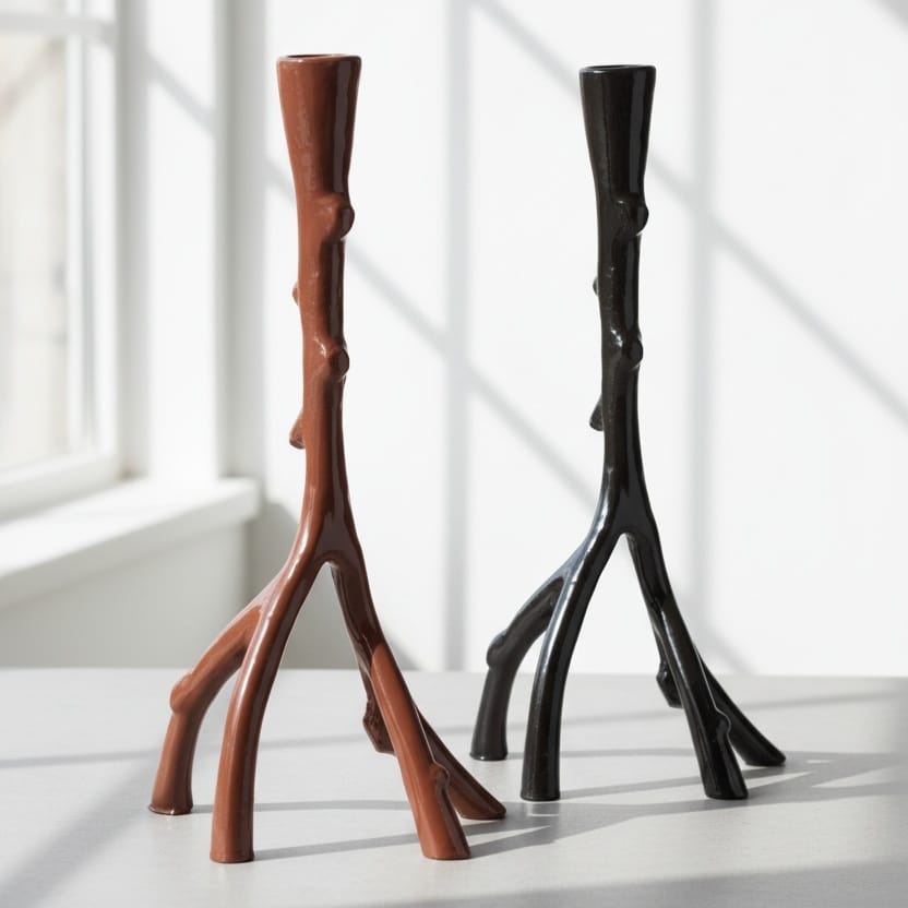 ŚWIECZNIK 31CM Z FILOZOFICZNYM WYKOŃCZENIEM Z ALUMINIUMUnikalny design oraz nowoczesne podejście do estetyki . ten świecznik w kształcie naturalnych gałęzi doskonale wpisuje się w trendy aranżacyjne. Sprawdzi się zarówno w minimalistycznych, jak i rustykalnych wnętrzach, dodając im charakteru.Kluczowe cechyEfektowny design przypominający naturalne gałęzie z holograficznym wykończeniem.Trwały materiał - wysokiej jakości aluminium, zapewniający długowieczność produktu.Możliwość wyboru spośród dwóch kolorów - eleganckiej cynamonowej i zmysłowej czerni.Wysokość 31 cm - idealna do standardowych świec.Stabilna podstawa zapobiegająca przewracaniu się świecznika.Dlaczego warto wybrać kolekcję HV597111Kolekcja HV597111 to połączenie elegancji i funkcjonalności. Dzięki nowoczesnemu wzornictwu oraz doskonałemu użyciu materiałów, każdy element staje się ozdobą, która przyciąga wzrok. Świecznik doskonale sprawdzi się na każdą okazję . od romantycznej kolacji po przyjęcia w gronie najbliższych.Zastosowanie i pielęgnacjaŚwiecznik można łatwo czyścić wilgotną ściereczką. Warto unikać kontaktu z silnymi środkami chemicznymi oraz ostrymi gąbkami, aby zachować piękne wykończenie na dłużej.Dane techniczneWymiary: Długość 24 cm, Wysokość 34,99 cmMateriał: aluminiumKolor: cynamonowy oraz czarnyKompatybilność: Idealny do świec standardowychPojemność:
