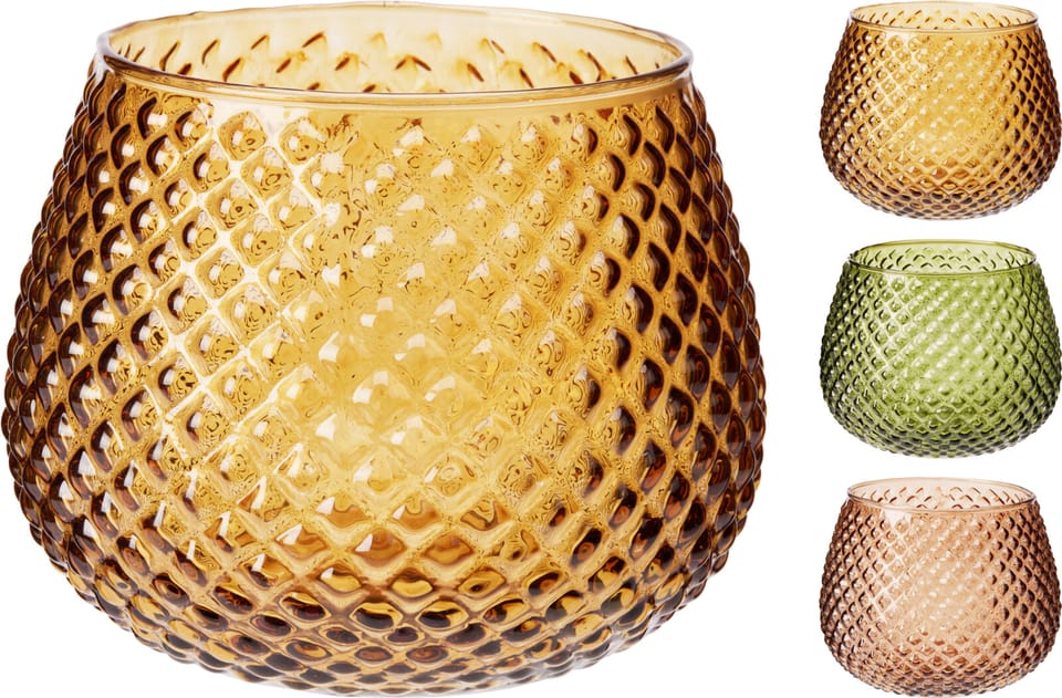 ŚWIECZNIK NA PODGRZEWACZE 18CM Kolorowe szkło w stylu vintage Kolekcja MondexPrezentowany świecznik na podgrzewacze to elegancki dodatek, który wprowadzi ciepło i styl do każdego wnętrza. Jego unikalny design oraz kolorowe szkło przyciągają wzrok, a struktura dodaje mu charakteru, tworząc nastrojowe oświetlenie.Kluczowe cechySzkło w ciepłych odcieniach tworzy przytulną atmosferę w pomieszczeniu.Niezwykła faktura z wypukłymi wzorami odbijającymi światło dodaje elegancji.Uniwersalny rozmiar 18 cm doskonale sprawdzi się na każdym stole.Styl vintage, który pasuje do różnych aranżacji . od klasycznych po nowoczesne.Wielofunkcyjność . świecznik idealny do użytku w domu i na imprezach.Dlaczego warto wybrać kolekcję MondexWyjątkowy styl tego świecznika na podgrzewacze to nie tylko piękno, ale i funkcjonalność. Zastosowanie wysokiej jakości szkła sprawia, że produkt jest wytrzymały i łatwy w pielęgnacji. Dzięki różnorodnym kolorom możesz stworzyć niepowtarzalną atmosferę, która zachwyci Twoich gości.Zastosowanie i pielęgnacjaŚwiecznik należy czyścić wilgotną szmatką oraz unikać używania agresywnych detergentów. Doskonale sprawdzi się na romantycznych kolacjach, podczas spotkań z przyjaciółmi oraz w dekoracji wnętrz.Dane techniczneWymiary: 15 cm x 22,82 cmMateriał: szkłoKolor: odcienie brązu, zieleni i różuKompatybilność: standardowe podgrzewaczePojemność: szklany pojemnik na świeczkę