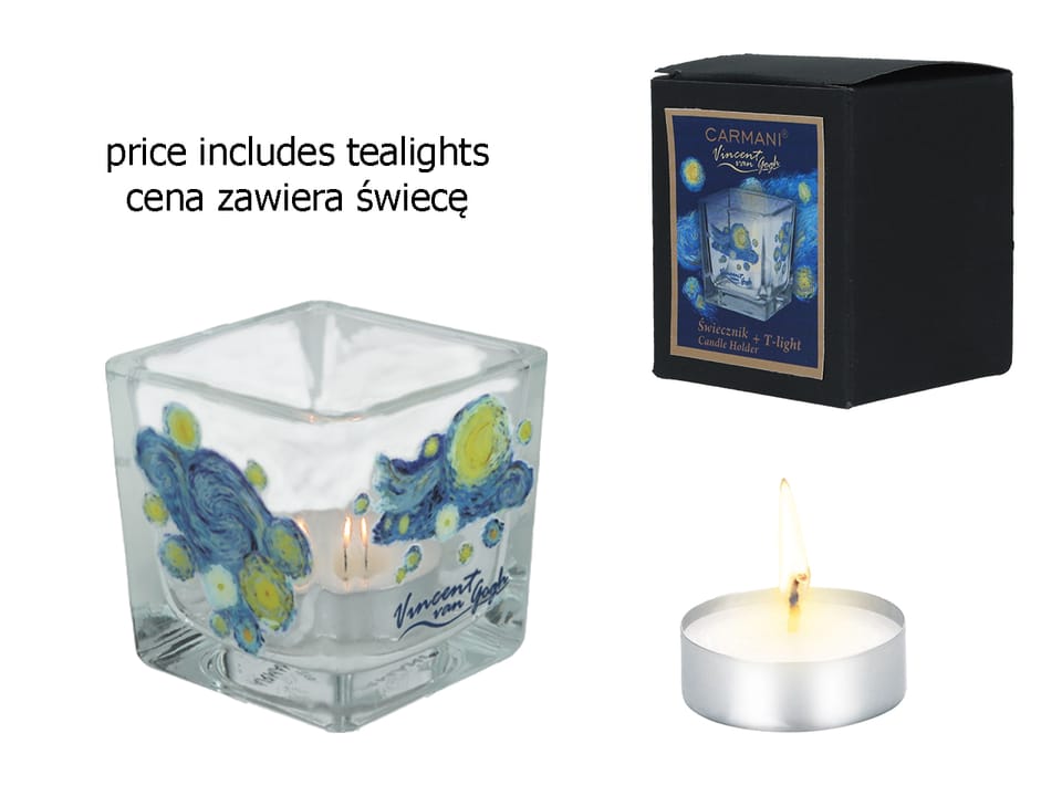 Świecznik szklany + tealight - V. van Gogh, Gwiaździsta Noc CARMANI