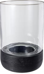 Świecznik szklany z dnem z drewna mango8x18x28 cm brązowy